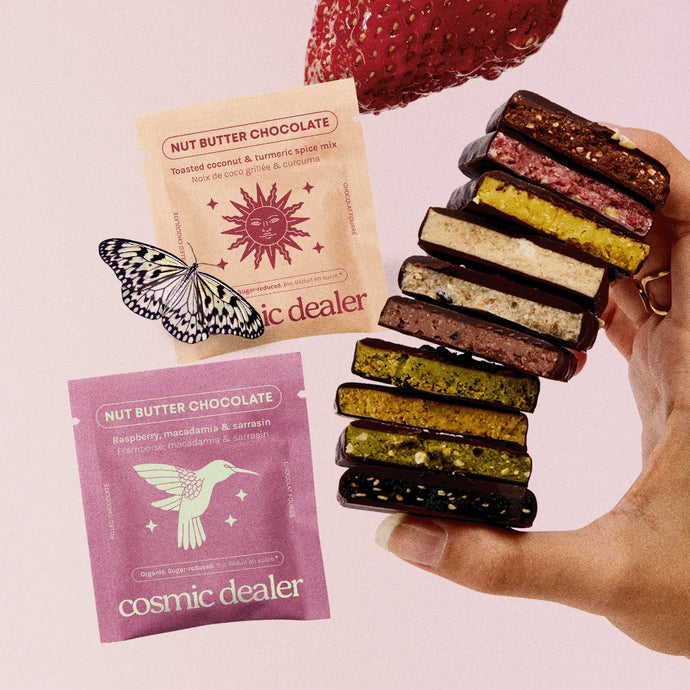 Cela fait plusieurs années que je suis adepte des chocolats Cosmic dealer, notamment la pistache et la framboise 😊 Ils sont parfaits pour une pause gourmande et peu sucrée sans la culpabilité qui va avec ! Je ne saurais plus m'en passer !