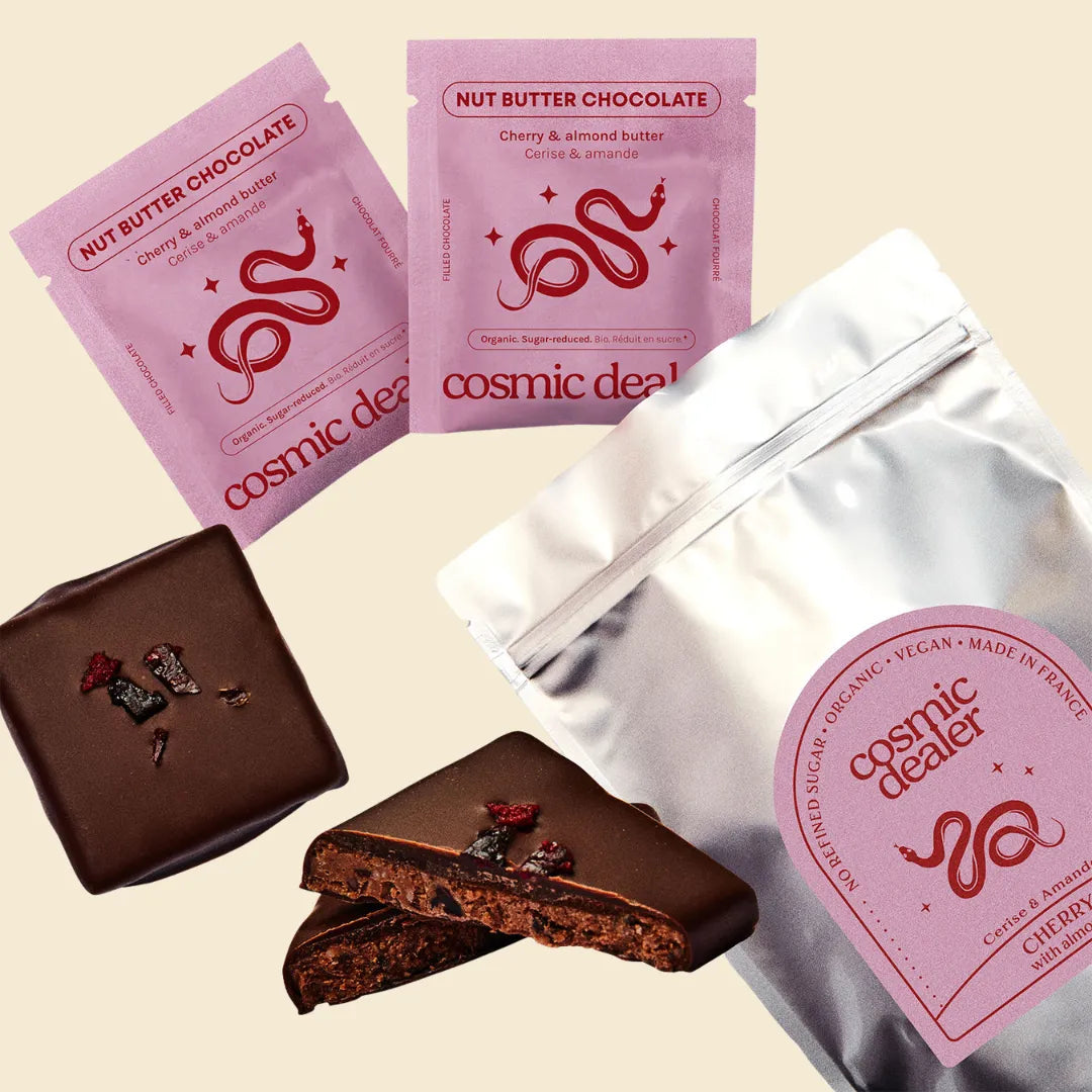 We use premium single-origin organic cacao from Ecuador and São Tomé, ethically sourced from cooperatives and crafted into chocolate in France.
