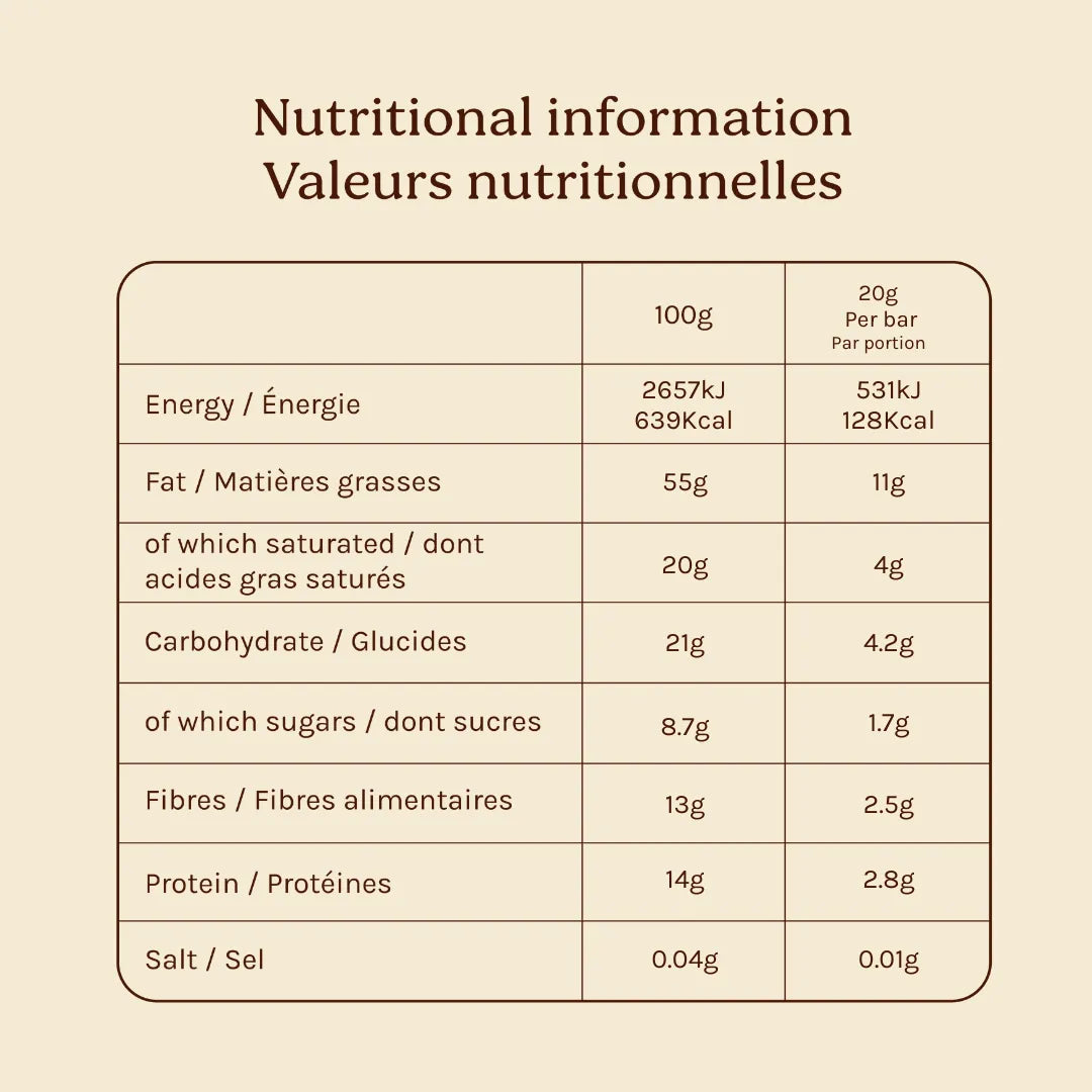 • 80% less sugar than comparable chocolate bars (unrefined date sugar).