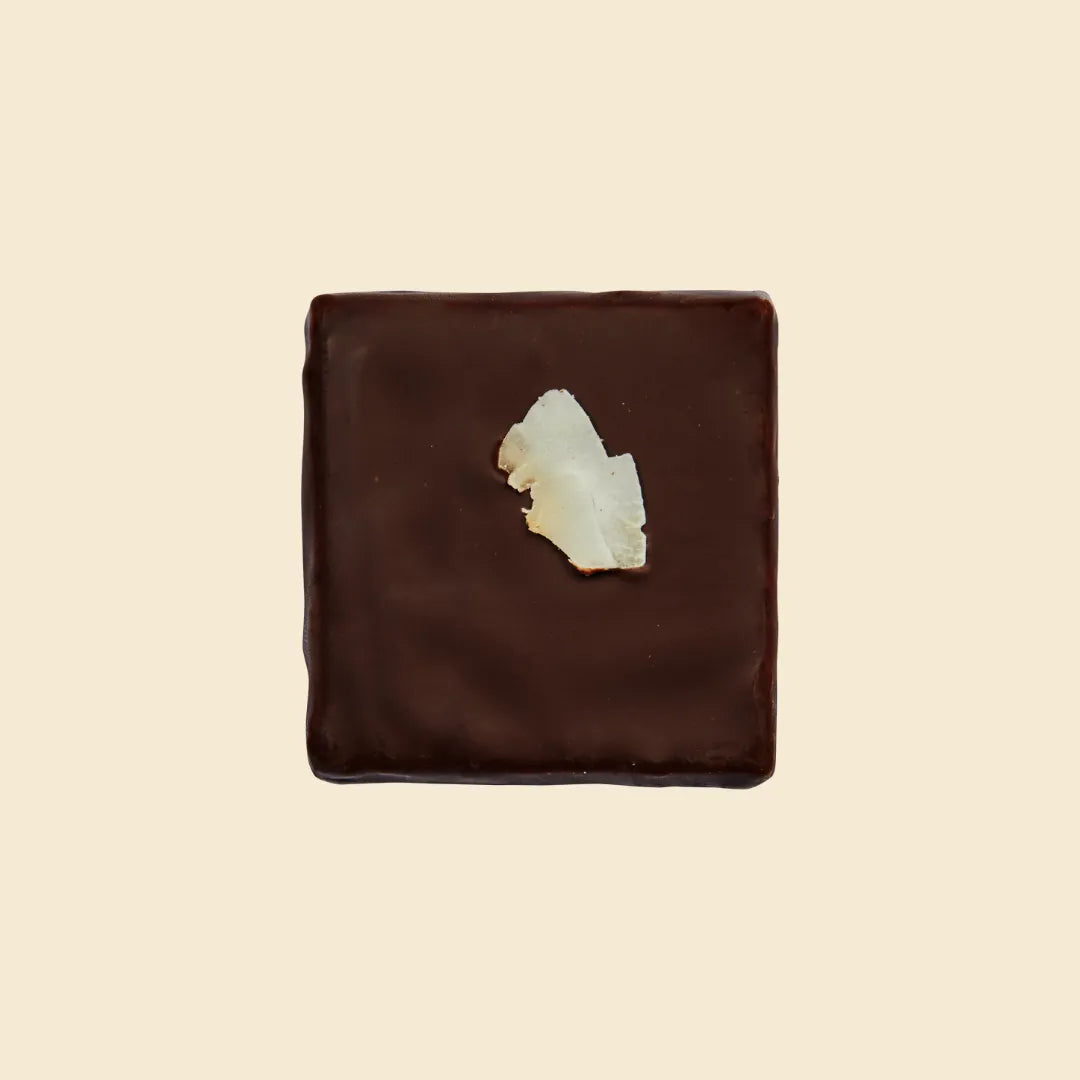 A nutritious treat, combing nourishing almond butter with crunchy coconut and warming spices - all dipped in organic, single-origin, 75% dark chocolate.