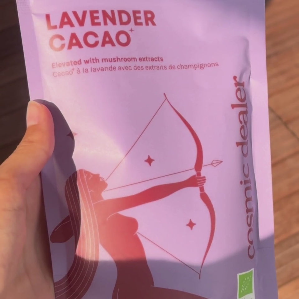 Lavender Cacao* Drinking Chocolate - Drinking cacao blend enhanced with mushroom extracts & lucuma. A comforting evening blend with the finest single origin Sao Tomé cacao from raw beans and ground lavender flowers. Superfruit lucuma adds subtle notes of caramel.