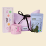 Includes: Chakra Box of 7 dark nut butter chocolates, Genmaicha Green Tea She Woke Up and Conquered the World, Herbal Koffee and gift pouch.